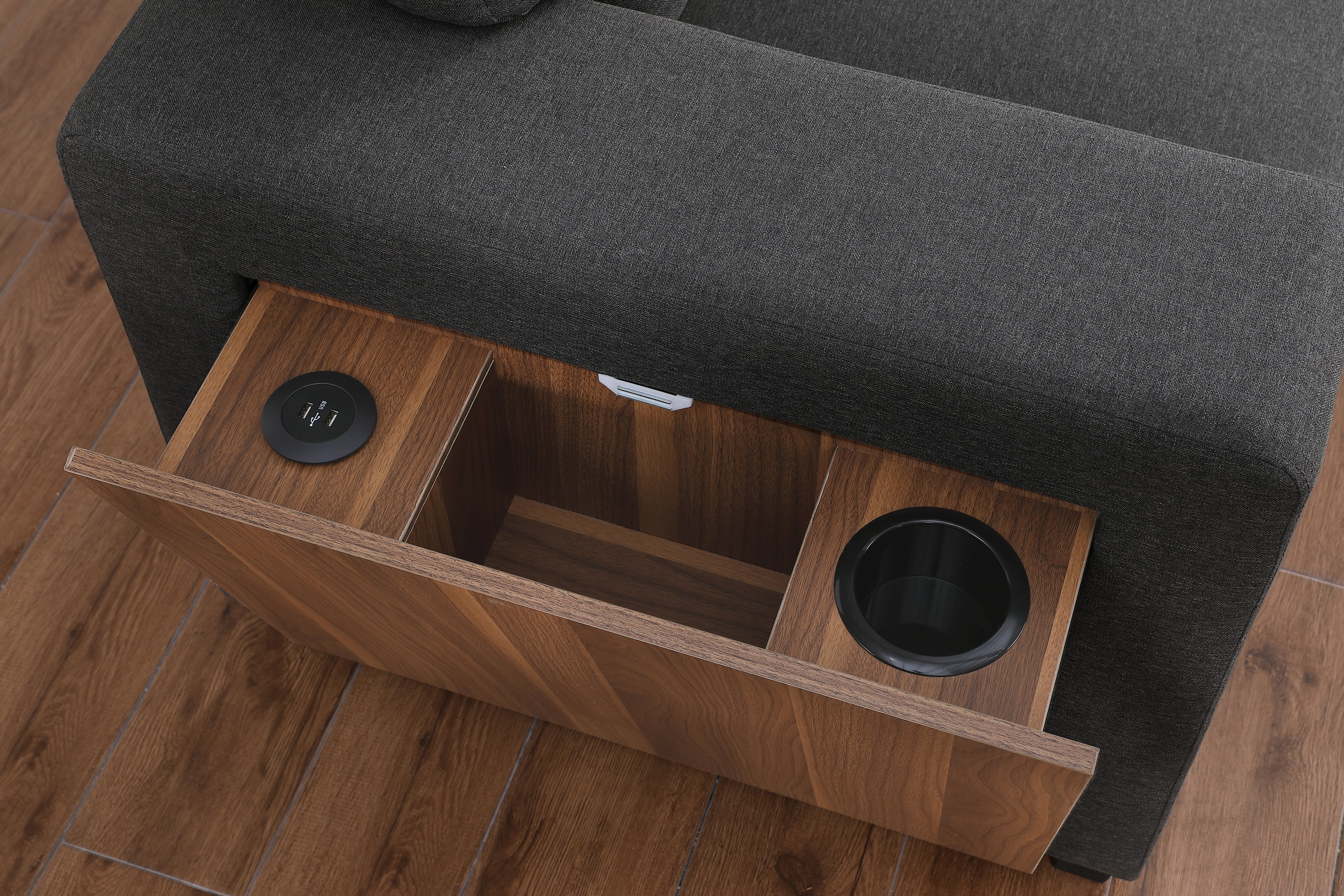 A pull-out sectional sofa is a versatile and functional piece of furniture that combines comfort, style, and convenience. This particular sofa features a design that allows for easy customization and provides various amenities to enhance your lounging experience